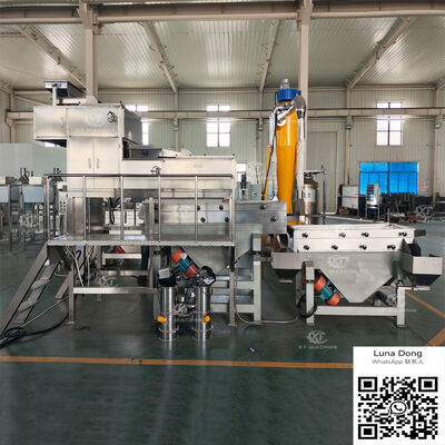La macchina dispone di un processo di taglio in due fasi: le arachidi spaccate vengono alimentate tramite trasportatore verticale e prima tritate in grani grossolani.poi trasformati in una seconda fase per creare granulatori di miscelazioneUn filtro vibrante integrato classifica l'output in quattro specifiche uniformi: 5-8 maglie, 8-10 maglie, 10-12 maglie, con materiale inferiore a 12 maglie che raggiunge la consistenza di polvere.