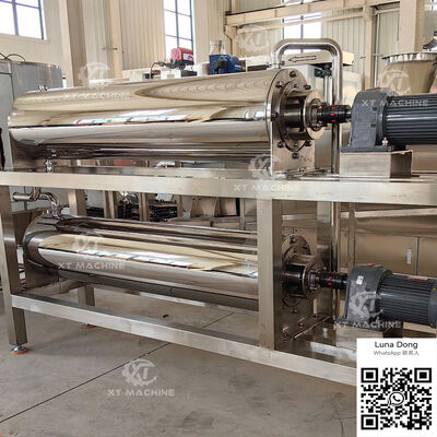 Questo refrigeratore industriale per burro di arachidi riduce efficacemente la temperatura del burro di arachidi caldo ai livelli ambientali, facilitando l'integrazione senza soluzione di continuità con le riempitrici di arachidi. Il sistema consente una lavorazione continua con ingresso di burro di arachidi caldo e uscita raffreddata, ottimizzando l'efficienza della produzione.