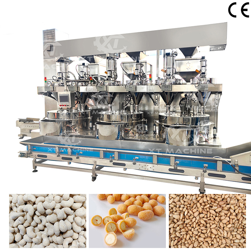 Macchina di rivestimento a tre stazioni a capacità elevata completamente automatica Macchina di rivestimento per arachidi con paprika per rivestimento di noci e fagioli