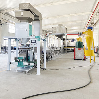 L'intera linea di produzione comprende un tostatore a nastro continuo, un silo, una macchina pelatrice per arachidi, una selezionatrice a colori e una macchina confezionatrice. Rispetto alle linee di produzione tradizionali, questa linea utilizza una macchina pelatrice per arachidi a flusso d'aria invece di una macchina pelatrice a rulli abrasivi.