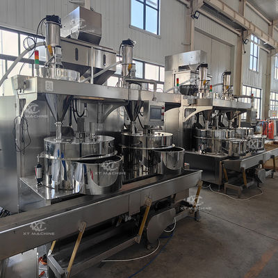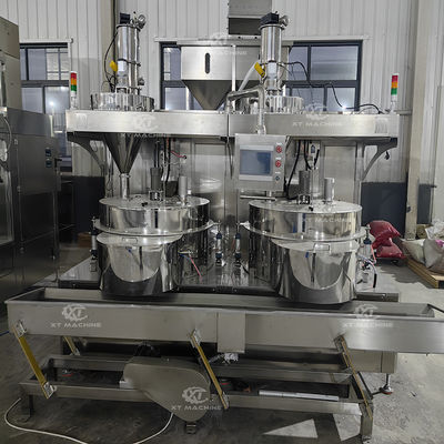 La macchina di rivestimento automatica è ideale per prodotti come arachidi rivestiti di pasta, caffè aromatizzato, noci, semi di girasole, ecc.La tramoggia di alimentazione del prodotto di base con porta scorrevole a controllo pneumatico consegna il prodotto alla bilancia di pesatura controllata dal PLC.I lotti di prodotto base misurati con precisione vengono immessi nella camera di rivestimento.La soluzione viene introdotta nell'applicatore liquido a disco a rotazione ad alta velocità tramite una pompa a spostamento positivoI tempi di ciclo variano a seconda del tipo di prodotto e del numero di ingredienti aggiunti.Controllo preciso della dimensione del lotto, e consegna del liquido e della polvere, mantiene la consistenza del prodotto finito rivestito.