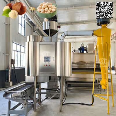 La sala di blanchimento delle arachidi è dotata di una camera appositamente strutturata, la quale completa automaticamente il processo di blanchimento attraverso cicli di soffiatura e rilascio programmati.Questa tecnologia avanzata garantisce che la superficie delle arachidi rimanga intatta, raggiungendo una velocità di pelazione fino al 98%, con percentuali di arachidi bianchi interi superiori all'85%.