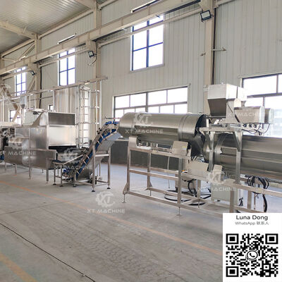 Questa attrezzatura industriale è stata progettata specificamente per la produzione di noci rivestite e fritte.e condimenti, migliorando significativamente l'efficienza della produzione e la qualità dei prodotti.